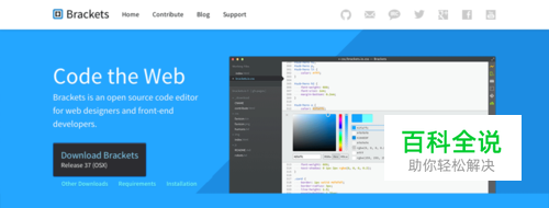 打开 Brackets.io,点击 Download Brackets ,网页会根据你的操作系统,为你提供对应版本的 Brackets 编辑器。你也可以在所有发布版本里面自己来选择。如果是自己选择下载,需要注意软件的格式,一般 .dmg 是用在 Mac 系统上的软件, .msi 可以在 Windows 系统上安装。