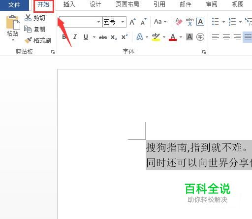 选择刚刚输入的文字,然后在菜单里找到开始选项,如图所示: