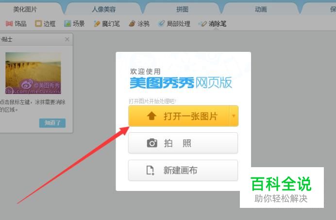 打开之后,先处理图片上的水印,将图片上的“搜狗指南”去掉,如图所示。