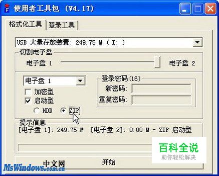 2.制作U盘启动盘 U盘启动盘的制作方法不同于制作软盘启动盘,使用Windows系统自带的磁盘格式化功能不能实现,而必需借助专门的工具软件。一般情况下,U盘制造商会随驱动程序光盘提供制作启动盘的专用工具软件。譬如爱国者系列U盘使用的工具软件为MFormat,纽曼系列U盘使用的工具软件为iFormat。利用这些工具软件可以制作出一张标准的U盘启动盘。 以纽曼U盘(256MB)为例,制作U盘启动盘的步骤如下所述。 第1步,首先将U盘插入USB接口,然后在驱动程序光盘中找到工具软件iFormat,双击运行该软件,打开“使用者工具包”。在“格式化工具”选项卡中选中“启动型”复选框,并选中ZIP单选钮。最后单击“开始”按钮,如图2010041473所示。 图2010041473 选中ZIP单选钮 第2步,打开“格式化USB电子盘”对话框,提示用户即将格式化。单击“是”按钮开始格式化,如图2010041474所示。 图2010041474 确认格式化U盘 第3步,iFormat开始格式化U盘,格式化操作完成后会提示用户重新拔插U盘。按照提示拔插U盘后完成启动盘的制作,如图2010041475所示。 图2010041475 重新拔插U盘