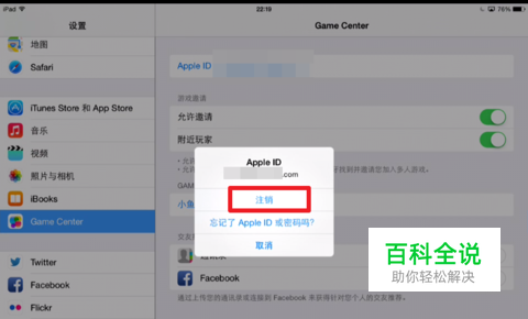 如果你没有登入Game Center,在进入某些游戏的时候就会出现下面的提示,十分烦人,但是可以选择【取消】,然后关闭游戏,重复3次,就不会再出现了2/9 退出:选择【设置】3/9 选择Game Center4/9 点击你的apple id5/9 选择【注销】6/9 就可以退出了7/9 登入:登入可以在设置里进行登入,也可以在主屏上选择Game Center,8/9 然后登入9/9感觉不错的话,点击下方的投票,灰常感谢感觉不错的话,点击下方的投票,灰常感谢Game Center如何关闭、登入和注销退出[重新阅读]
