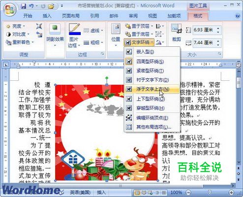 默认情况下,插入到Word2007文档中的图片作为字符插入到Word文档中,其位置随着其他字符的改变而改变,用户不能自由移动图片。而通过为图片设置文字环绕方式,则可以自由移动图片的位置,操作步骤如下所述: