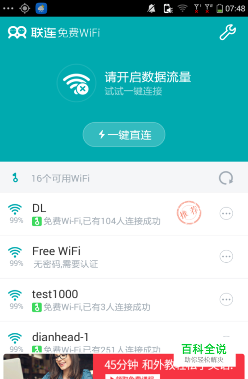 如果周边有China-net、CMCC或者ChinaUnicom等运营商的热点,依然可以免费连接,联连免费wifi每天会赠送30分钟的有效时长,也可通过联豆在“联商城”内换取时长