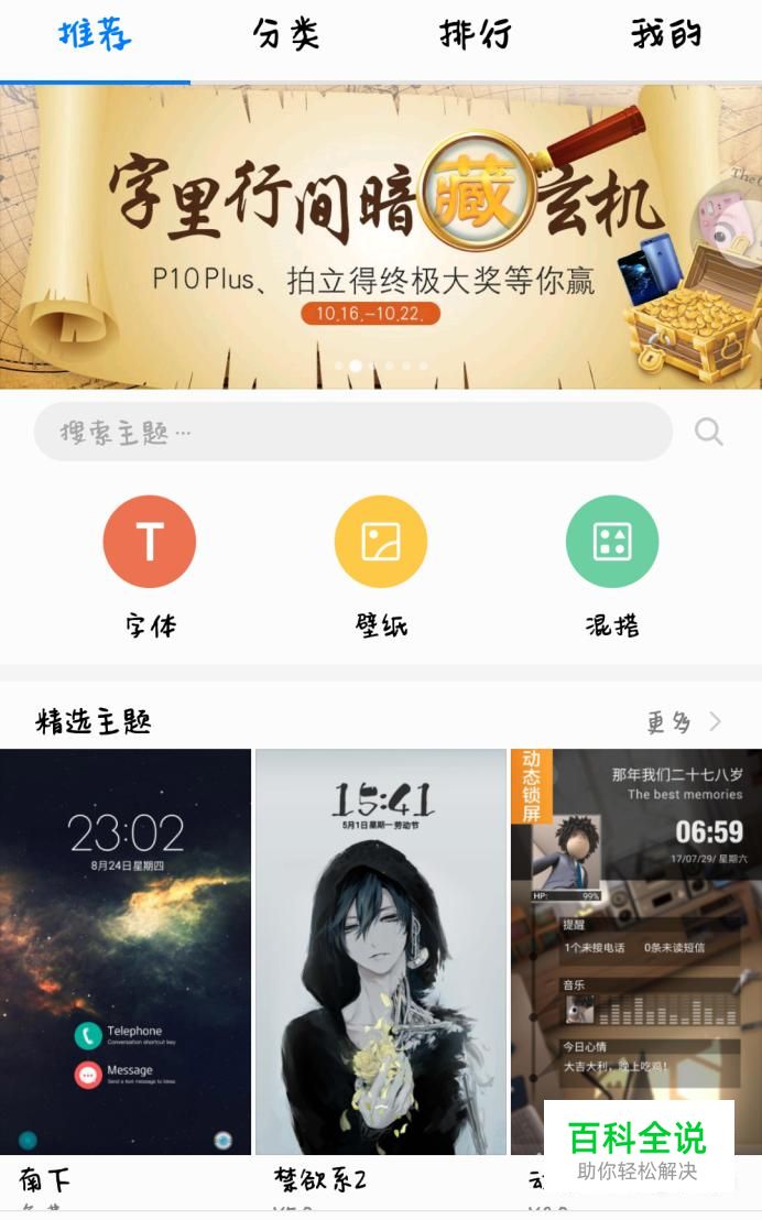 首先,更改字体,对于华为手机来说,在主题里面,一般位于手机的首页。点击它。如图所示。
