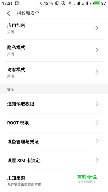 进入指纹和安全设置界面,点击“ROOT权限”