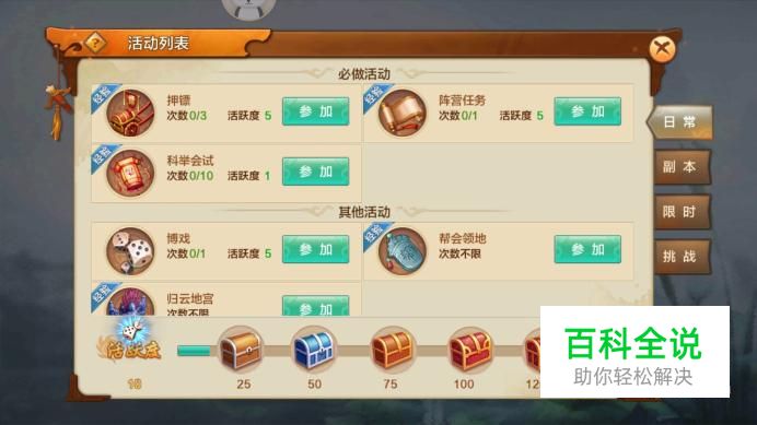 进入活动界面,点击“阵营任务”参加,每日可完成1次,完成后获得5点活跃度。