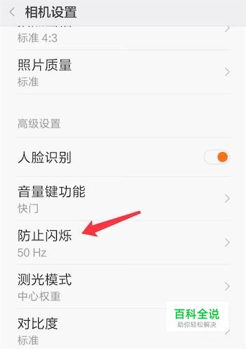 打开了相机的设置页面,点击下方的‘防止闪烁’选项,