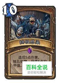 TOP1:终极感染,俗称终极赖皮,这是一张让德鲁伊可以为所欲为的卡牌,青玉德再也不用为过牌而担心,五点伤害过五张牌并且召唤一个5/5的随从,效果十分强大。