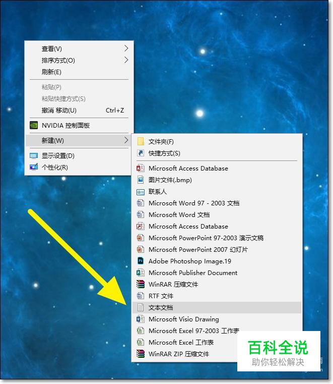 首先我们在电脑桌面点击鼠标右键,选择新建一个文本文档。