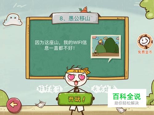 愚公移山。首先要将整个页面向向上滑,不要点击坑爹男,否则会被山上的那个人用大脚踩死的,将整个页面向上滑。