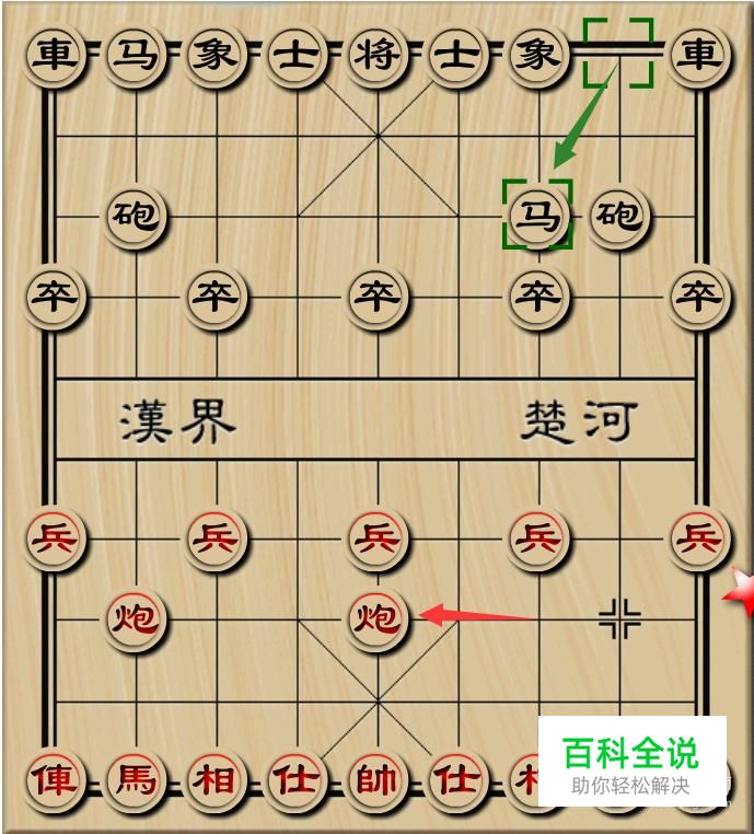 首先红方炮2平5,黑方马8进7,如图所示。