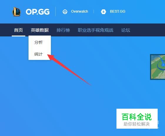 进入op.gg后点击英雄数据,然后点击统计(如图所示)。