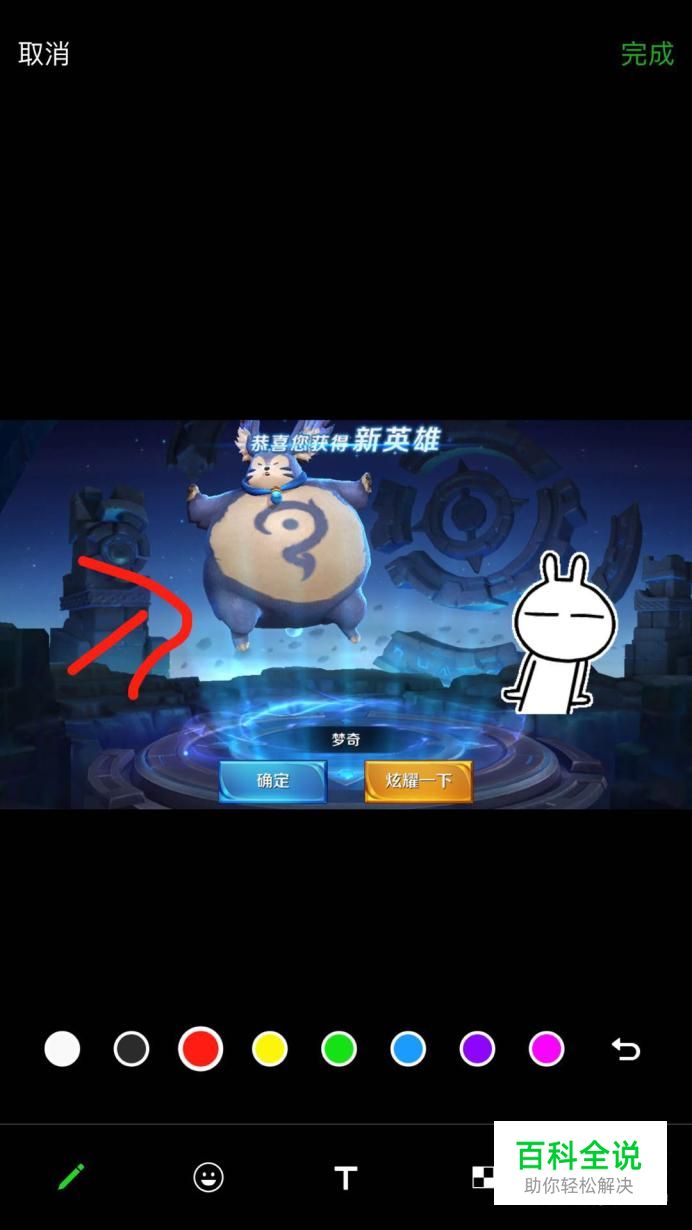 你可以点击屏幕下方的笔的形状,在图片上画出你想要的符号(本文以箭号为例),接着点击完成,如下图所示。