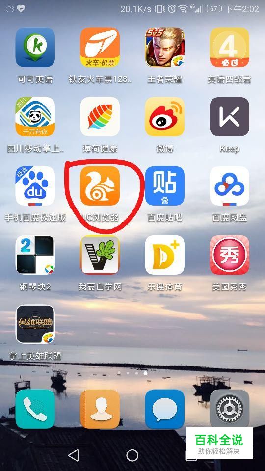 首先点击手机屏幕上的“UC浏览器”,如图所示。