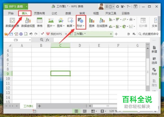 进入主界面后,在上方菜单栏中选择“插入”工具,然后在其子菜单中选择“形状”选项,如图所示: