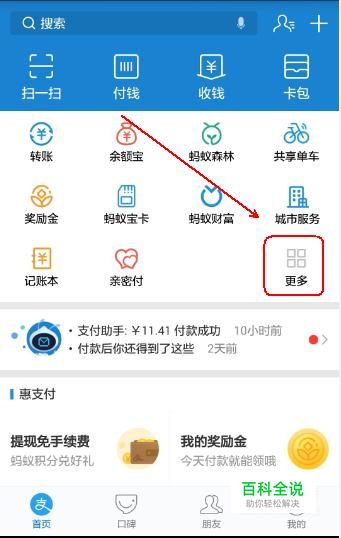 在“支付宝”界面上点击“更多”按钮。