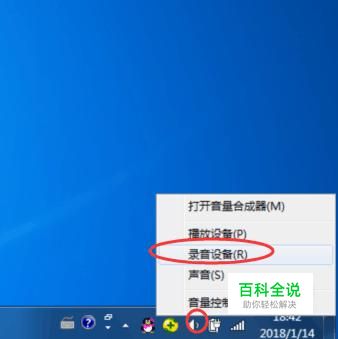 录制设备 右击电脑右下角的声音图标,然后选择【录制设备】,如下图所示: