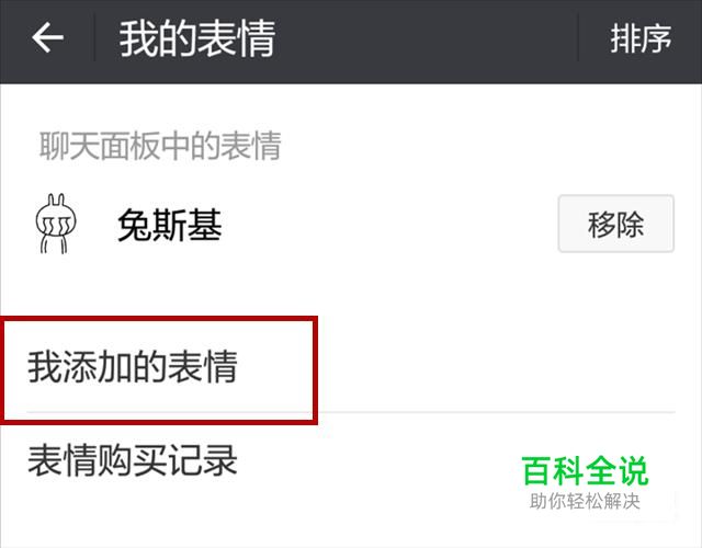 跳转到我的表情页面后,点击下面的“我添加的表情”,进入查看。