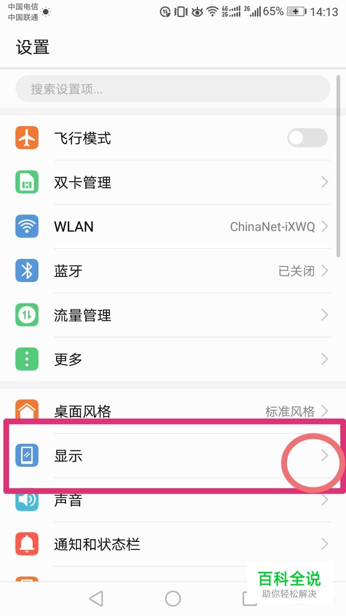 进入“设置”之后,找到“显示”栏目,点击进入。