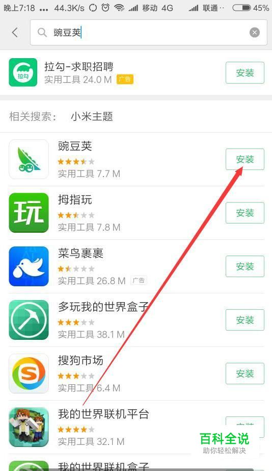 手机打开软件中心,点击搜索豌豆荚这个软件,点击下载并安装。