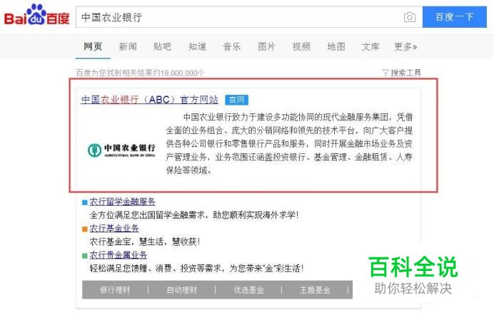 首先,请大家搜索“中国农业银行”关键字,打开中国农业银行官方网站。