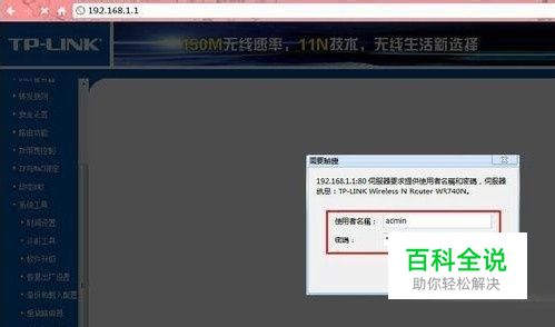 在浏览器地址栏输入192.168.1.1,然后点回车!这时候会跳出一个对话框,提示起输入用户名和密码,我们就输入:admin 然后点击登入!