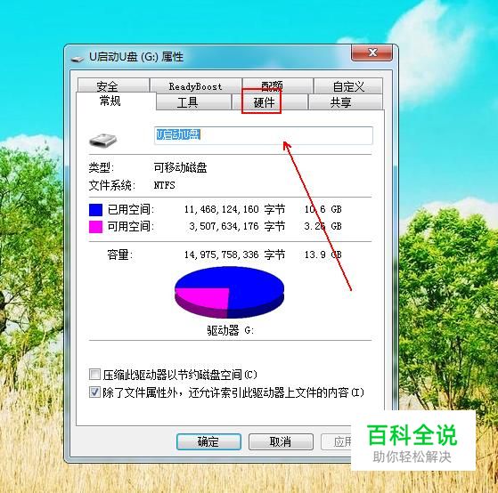 在弹出的属性窗口中单击“硬件”选项。