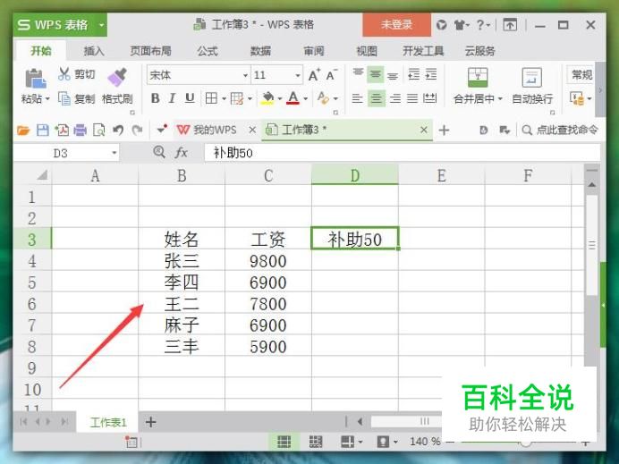 在该界面内点击左上角WPS表格,在其子菜单中点击“打开”选项,找到我们需要的表格文件,点击确定。打开后,我们的目的就是通过“加”运算调整表格工资数据,如图所示: