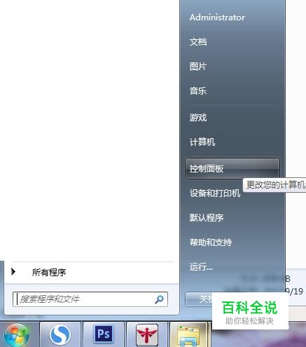 在win桌面上点击”win”图标并在弹出的菜单列表中点选“控制面板”选项。