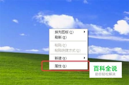 右键点击桌面上的空白地方,然后点击‘属性’