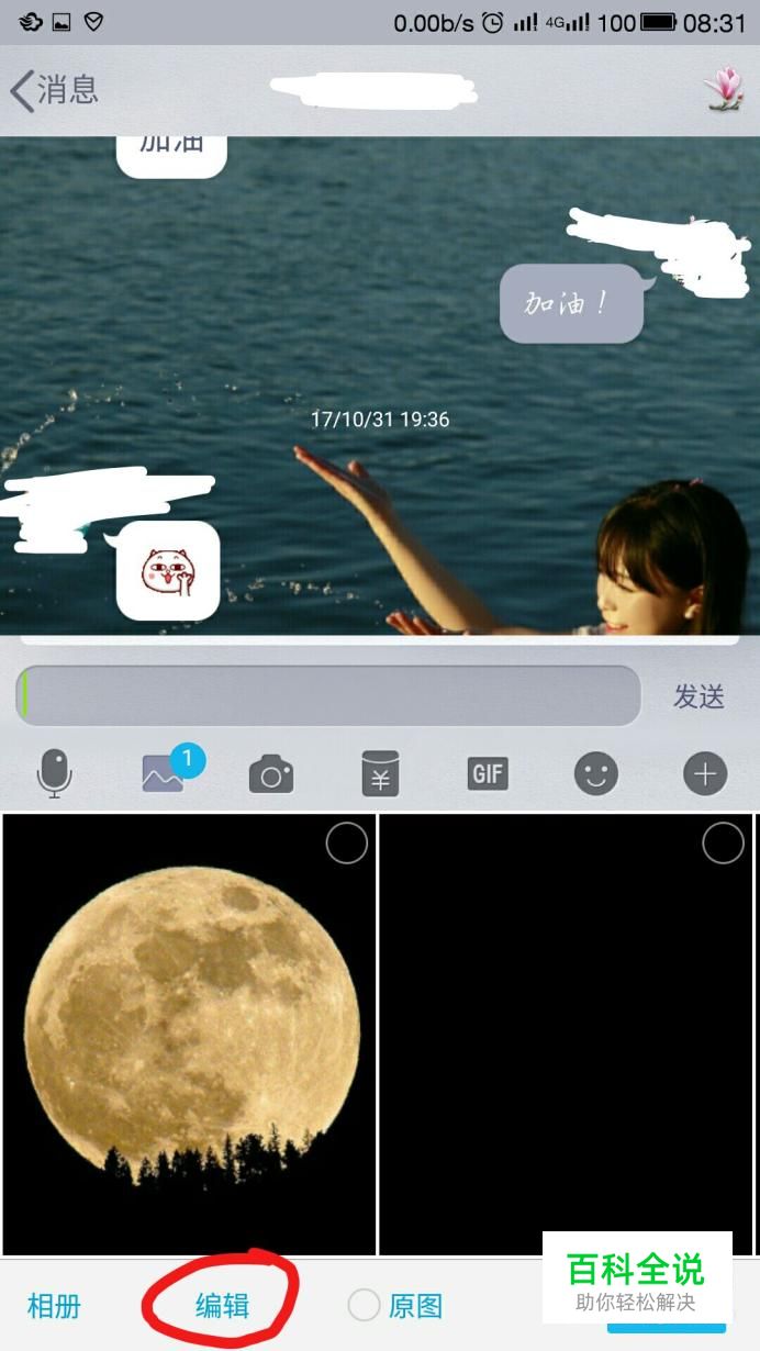 点击下面的“图片”,选择想要发送并编辑的照片,选中。