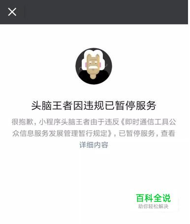 但近日却不能登录头脑王者,原因是被微信小程序给封了,究其原因,微信官方在相关公告中提及,是因为头脑王者的题目审核不严谨,无益于游戏;