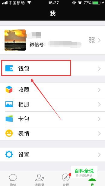 首先打开手机微信软件,然后在“我”页面点击钱包按键。