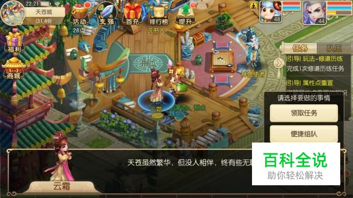 进入游戏主界面,可以直接和“云霜”进行对话,也可在活动中点击前往,在弹框中选择“便捷组队”