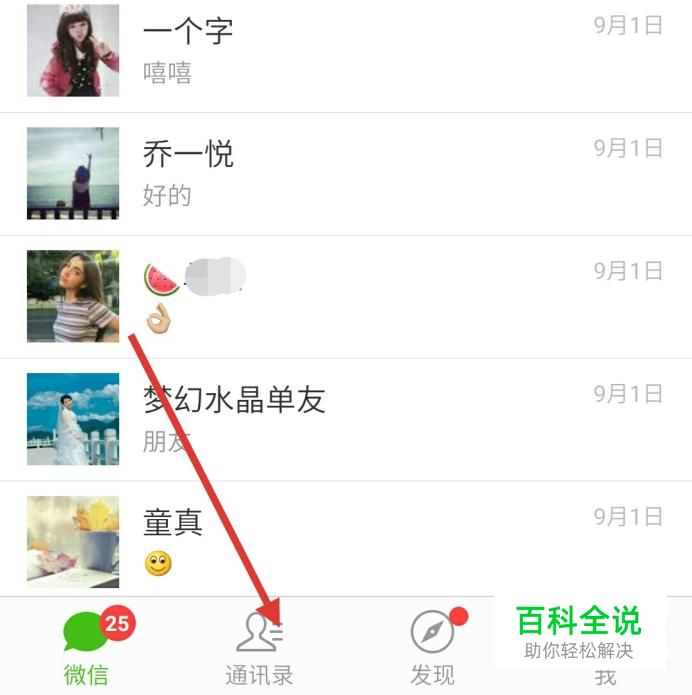 打开手机,点击微信,在打开页面点击通讯录。