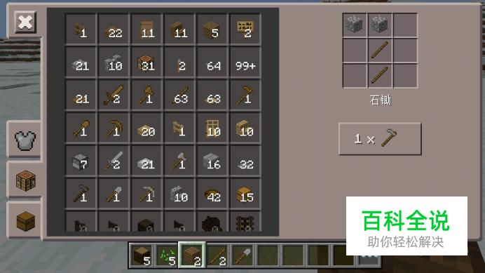 首先,在种小麦之前,我们要准备合适的工具,例如锄头、铲子和铁桶,有了这三样工具之后我们才能开始种地,至于它们的制作方法,如图中所示,需要石头、木棍和铁锭。