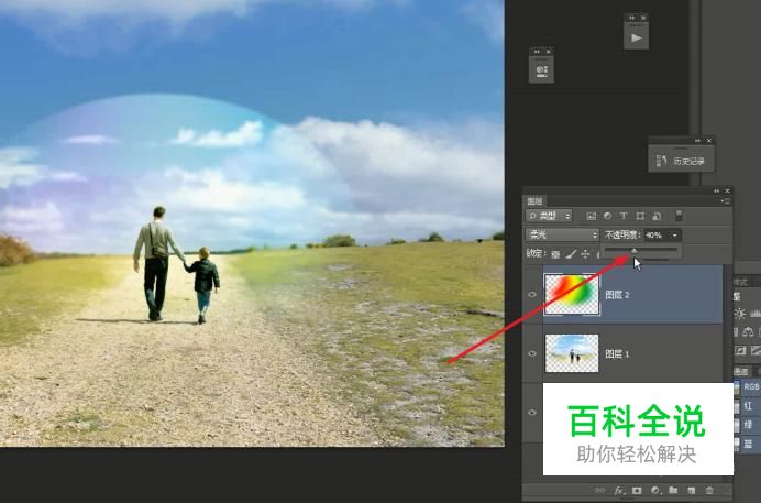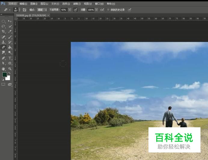 使用橡皮擦工具,但我没橡皮擦工具的画笔硬度调到最低。 快速擦除地面上的区域,初步完成我们的防护罩效果。
