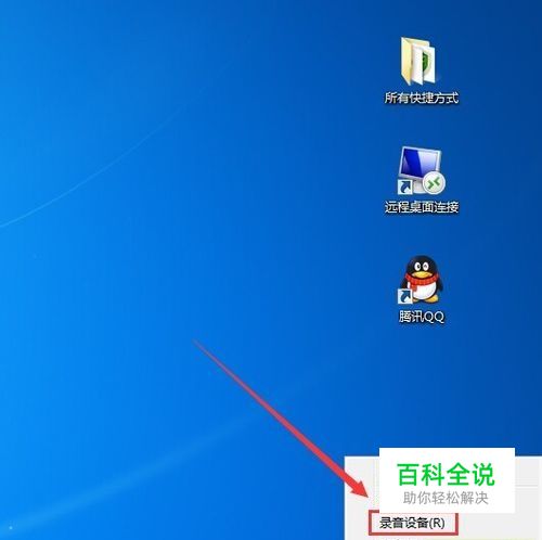 首先打开电脑之后,我们右键电脑右下角的音量图标,在弹出的选项中,我们点击“录音设备”选项 如图