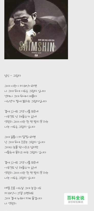 有些网站的某些文字是不能进行复制粘贴的。现在来讨论一下解决办法。以我在知道上遇到的一个问题为例子说明一下。我在知道上回答问题的时候遇到这样一位网友,他想知道shim shin的《影子》的歌词。好不容易在一个韩国网站上找到了歌词,却没有办法进行选择,所以没法进行复制粘贴了。怎么办呢?办法是有的。