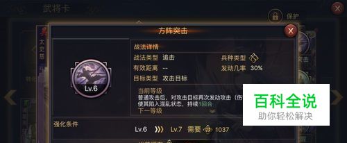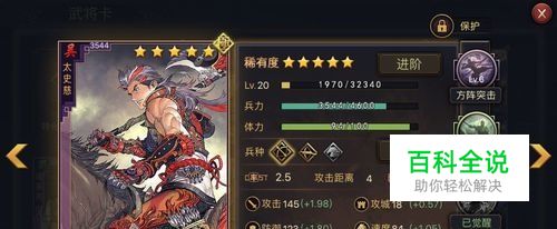 然后,来介绍一下太史慈的自带技能——方阵突击 方阵突击作为一个追击战法30%的发动几率还是不错了(当然不能跟徐庶,张绣比) 而且追击之后必定会使对方混乱(相当于催眠,啥都不能干)一回合,也就是说让对面混乱的几率也是30%,很不错的控制技能。