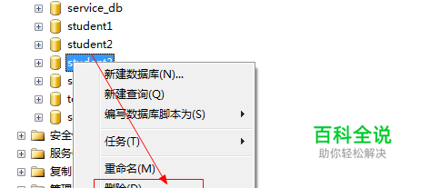 然后找到目标数据库(需要删除的),“右键”→“删除”。