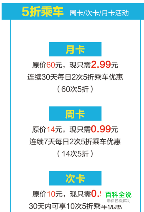 然后会显示出一系列的【5折乘车套餐】。价格从1块到块均有。可以按照自己的实际情况来购买。