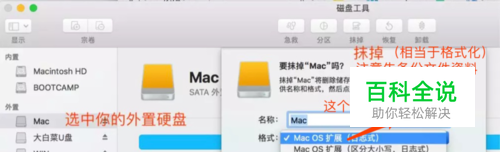 首先 格式化外置硬盘,选择苹果系统专用格式MAC OS扩展(日志式)。