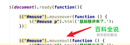 接着我们就可以添加js事件了,通过添加mouseover事件,我们就可以实现鼠标移进的逻辑事件了,在这里我们为p元素设置信息,提示鼠标移进了。
