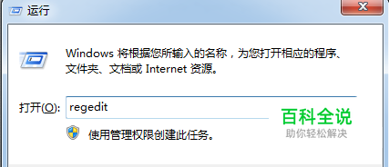 win+R打开运行对话框,输入“regedit”打开注册表。