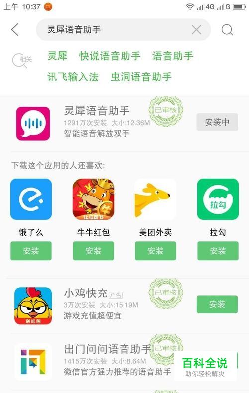 在手机”应用中心”,搜索“灵犀语音用手”,找到后,点击“安装”。