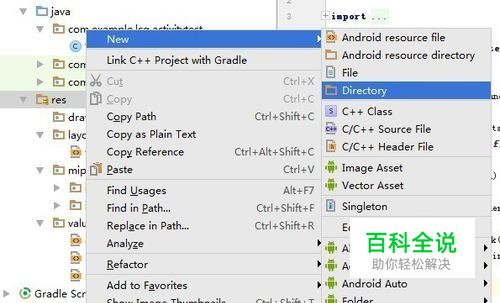 打开Android studio,首先添加menu的目录文件夹,在res上点击右键,选择new-directory。