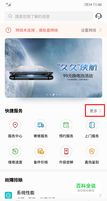 打开服务的主界面以后,点击快捷服务后面的“更多”。