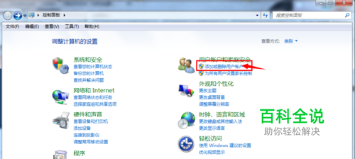 在打开的 “控制面板”里找到 “添加或删除用户账户”并点击