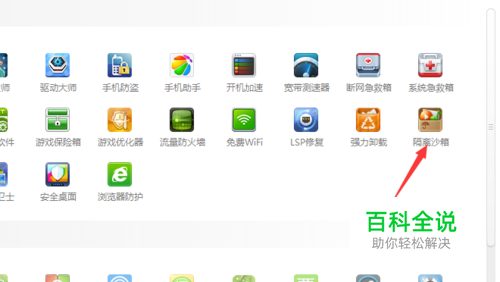 我们是借助于隔离沙箱来实现的,电脑上安装有360的话可以直接使用。找到隔离沙箱,点击。